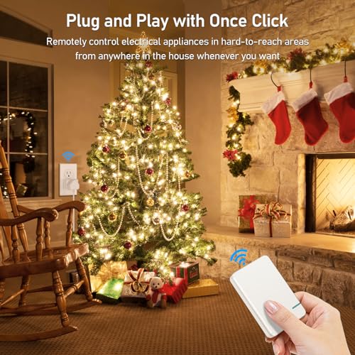 Thinkbee Remote Control Outlet Plug, 15A /1500W 600ft RF Range Wireless Light Switch Kit, Expandable Remote Outlet Switch for Lamp Fan Household Appliances, 80-275V with Anti-Surge 4000V