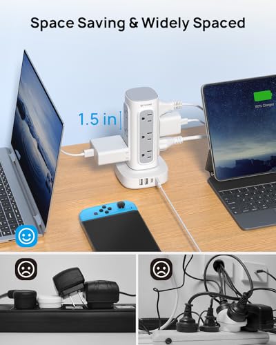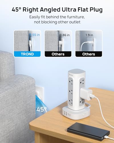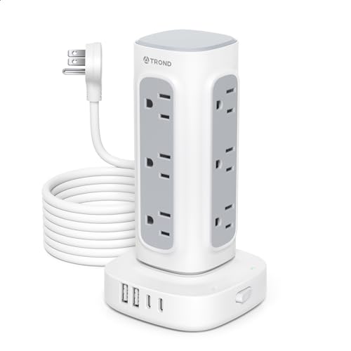 Specification: TROND Tower Power Strip Surge Protector – Power Strip with 4 USB Ports(2 USB C), 12 Widely Spaced Outlets, Ultra Thin Flat Plug 10ft Extension cord, 1700J, Home Office Supplies, Dorm Room Essentials
