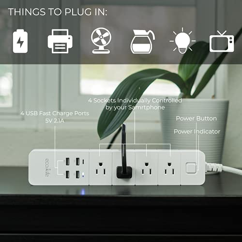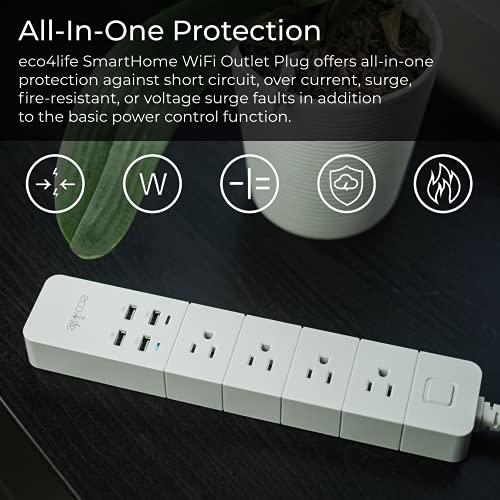 Specification: eco4life Wireless Smart Power Strip with Surge Protection, Compatible with Alexa Google Home, no Hub Required, Controlled by eco4life app(4 Outlets, 4 USB Ports), Milk White