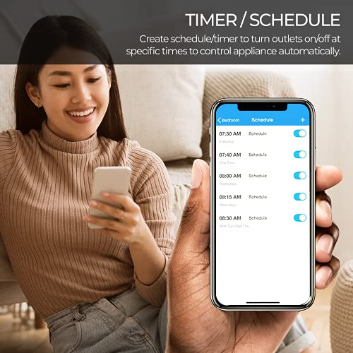 Schedule your wifi smart power strip to turn on or off anytime as pre-set time, you’ll set up the time one after the other for Every AC outlet as you needed. Every wifi smart power strip can set as much as 20 groups of timing tasks. Share get admission to as much as 30 families