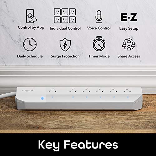 Specification: Geeni Smart Surge Protector 6-Outlet Power Strip – Wi-Fi Enabled with Voice Control (Alexa, Google Assistant), Energy Monitoring, Surge Protection, 3ft Extension Cord, Remote Access