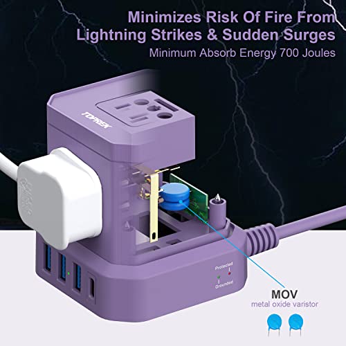 [Surge Overload Protection] – With minimum 700 joules energy absorbing capacity, TOPREK power strip protects your electrical appliances from lightning, surges or sparks. The on/off switch with integrated circuit breaker for overload protection of all outlets. When voltage surge is overwhelming, it will automatically cut power to protect connected devices.