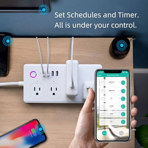 【Convenient Voice and Remote Keep an eye on】Smart power board can also be easily controlled with your voice via WiFi technology, allowing you to turn on/off the sockets effortlessly. The device does not want to use a hub or wired gateway to work.