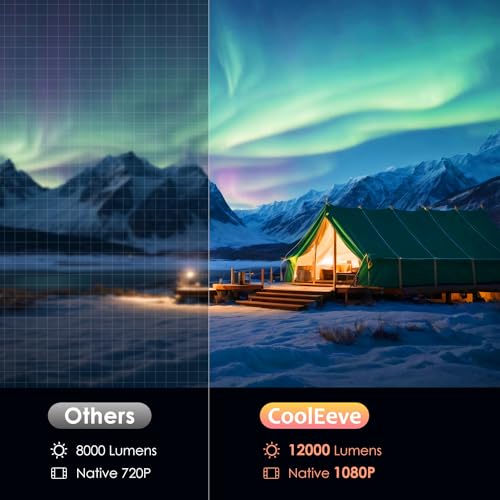 【1080P Full HD and 12000L Movie Projector】CoolEeve projector boasts excellent picture quality performance, equipped with 1080P HD resolution and an amazing 12,000 lumens brightness.1080P resolution delivers clear and sharp image details, allowing you to enjoy a more lifelike visual experience. And the high brightness of 12,000 lumens ensures that even in bright environments, the projected image remains clear and bright, presenting a picture effect with vivid colors. This outstanding image quality performance makes the CoolEeve projector ideal for displaying content, watching movies or giving presentations.