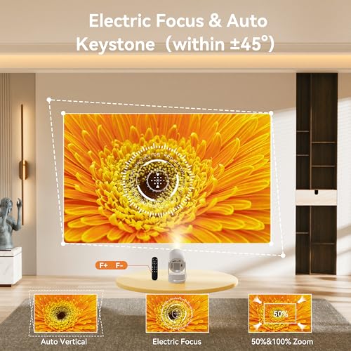 【5G WiFi6 & Bluetooth 5.3】The projector with wifi and bluetooth supports 2.4G/5G WiFi6 for faster, stable streaming and low-latency gaming.Bluetooth projector comes with BT5.3 function,it pairs easily with wireless speakers or headphones for an immersive home theater experience.