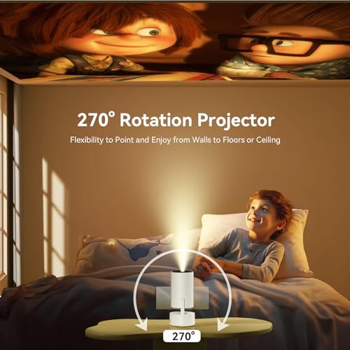 【Portable Size & 270°Rotatable】The outdoor portable projector has a 270 ° rotation function,can be rotated into the angle you need, projected to the ceiling,Take it anywhere, and savor high-quality visuals, whether you’re indoors or enjoying an out of doors movie night.