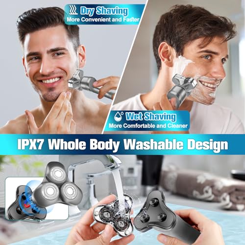 Electric Razor for Men,2024 Upgrade Men’s Electric Shavers Rotary LED Display/Waterproof/Rechargeable, Electric Shaver for Men Cordless Floating Head,Electric Shavers for Men