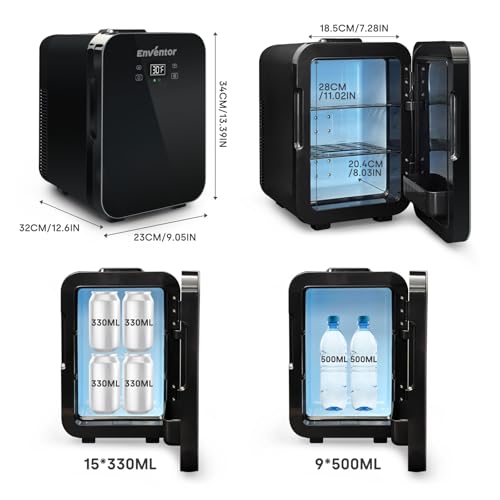 Specification: Enventor 10L Mini Refrigerator Skincare Fridge, AC 120V DC 12V Mini Portable Thermoelectric Cooler and Warmer Refrigerators with LCD Temperature Display for Cosmetics, Food, Office and Car (Black)