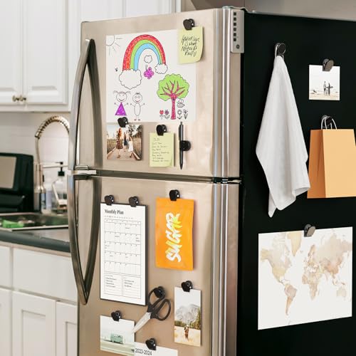 SMART&COOL Anti-Scratch Magnetic Clips with Silicone-Coated Base, Fridge Magnets, Office Supplies, Black, 16Pack