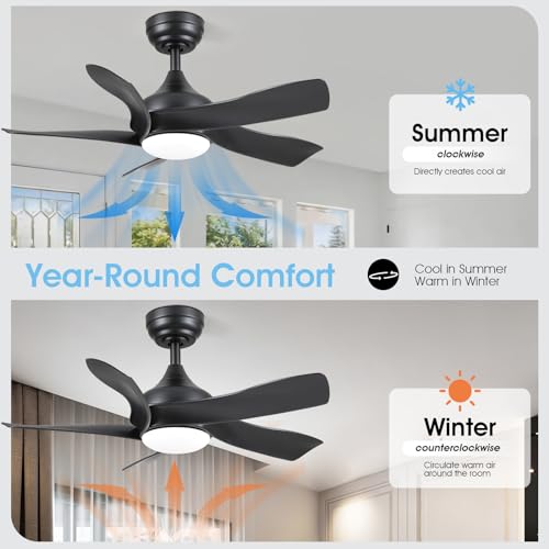 REVERSIBLE DC MOTOR: By pressing the F/R button on the remote control, you can switch the airflow direction of the ceiling fan from downward airflow in summer to upward airflow in winter, thus recovering the heat lost from the ceiling and distributing the heat evenly throughout the room; More energy efficient and quieter than traditional AC motors, with a noise level below 30 decibels. More suitable for families with babies or elderly people