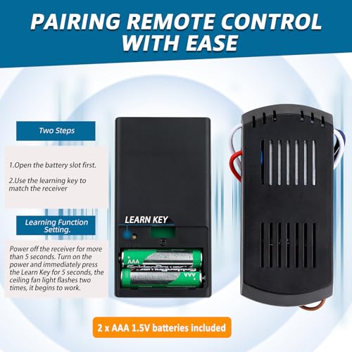 ⭐️ Replacement Ceiling Fan Remote: Refer to the detailed instruction manual for easy installation and wiring guidance, it is easiest use as Hampton bay ceiling fan remote, Harbor breeze ceiling fan remote, Harbor breeze replacement parts, Hunter fan remote replacement, Fanimation replacement remote.