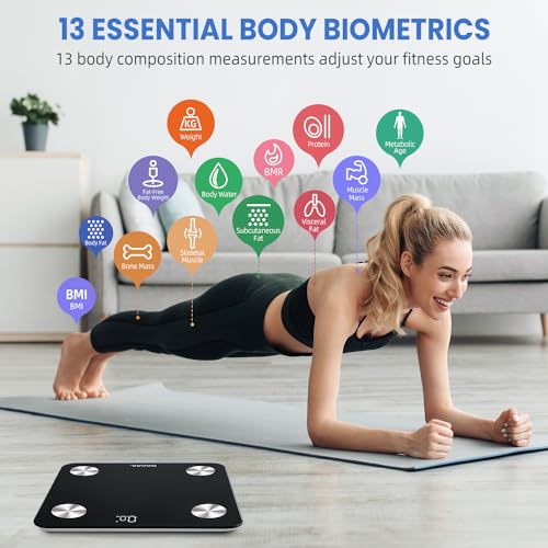 BAGAIL Smart Scale for Body Weight, Digital Bathroom Scale for BMI Weighing Body Fat, Body Composition Monitor Health Analyzer with Smartphone App, 400lbs/180KG -Black