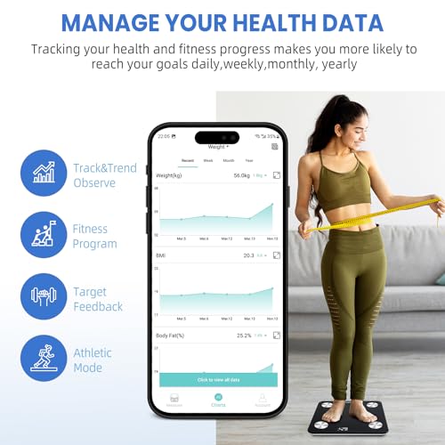 Specification: BAGAIL Smart Scale for Body Weight, Digital Bathroom Scale for BMI Weighing Body Fat, Body Composition Monitor Health Analyzer with Smartphone App, 400lbs/180KG -Black
