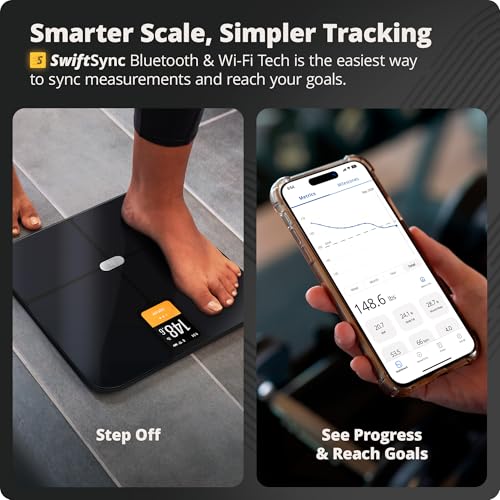 Easy Setup and Function: SwiftSync uses Bluetooth and Wi-Fi to make it easy to set up the smart scale and transfer data to your phone. And, the digital scales for body weight are rechargeable.
