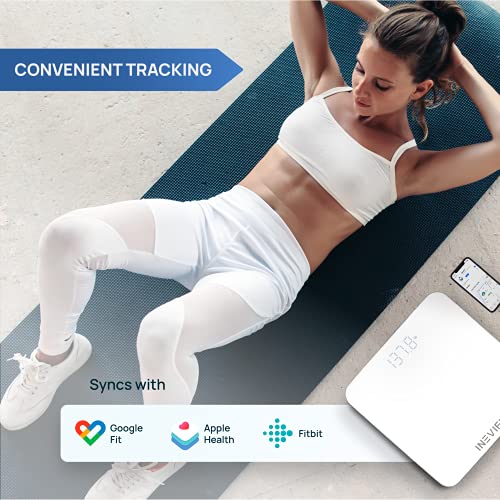 INEVIFIT Smart Bathroom Scale, Highly Accurate Bluetooth Digital Bathroom Body Weight Scale, Precisely Measures Weight & BMI for Unlimited Users (S-White)