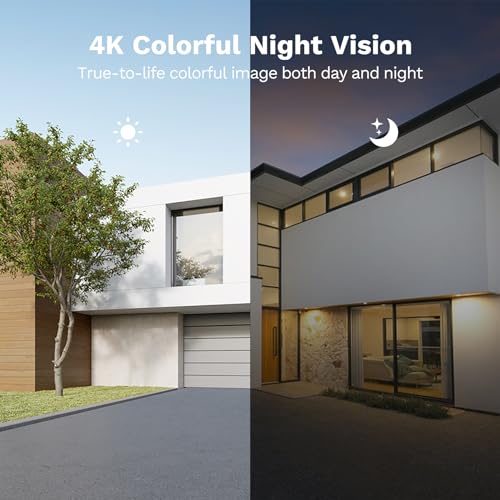 [4K Color Night Vision & IP67 Weather Resistance]- 4K security camera system Observe high quality footage with a 1/3”Ultra HD 4K, resolution (2880×1620),and 4pcs 60ft network cable to connect cameras and NVR. Camera features a heavy-duty metal weatherproof IP67 housing as well as 2pcs 3500K warm light LEDs to achieve unsurpassed color image and night-vision up to 82 feet. Warm lights can automatically adjust light intensity according to environment, and low power consumption.