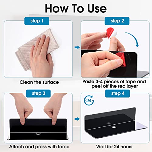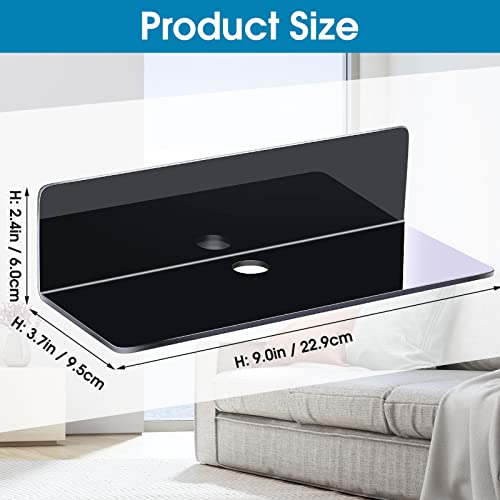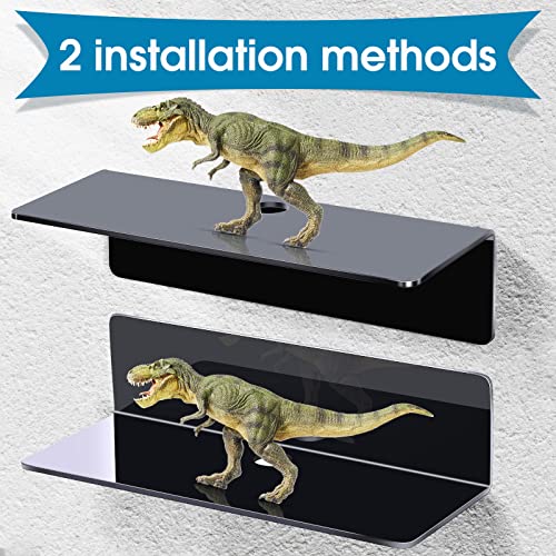 Specification: 8 Pieces Acrylic Floating Wall Shelves 9 Inches Adhesive Floating Shelf Screwless Shelves Hanging Shelves Small Self Adhesive Display Shelf for Smart Speaker, Action Figures, Security Cameras (Black)