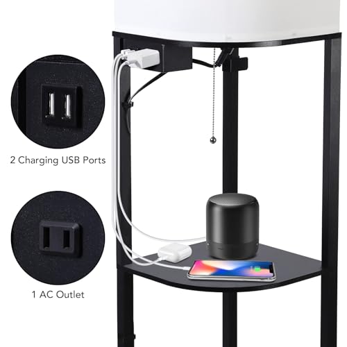 GAOMON Floor lamp with Shelves, Smart RGB Shelf Floor Lamp with 2 USB Ports & 1 Power Outlet, Display for Bedroom,Living Room, and Office – Classic Black