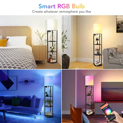 💡Smart RGB Bulb: Our shelf floor lamp is equipped with an intelligent RGB bulb, which can set 16 million colors to meet your needs for any environment and atmosphere. You can use APP to control it to achieve the color or brightness you want, and the service life of the bulb is up to 50000 hours, which is very suitable for your long-term use.