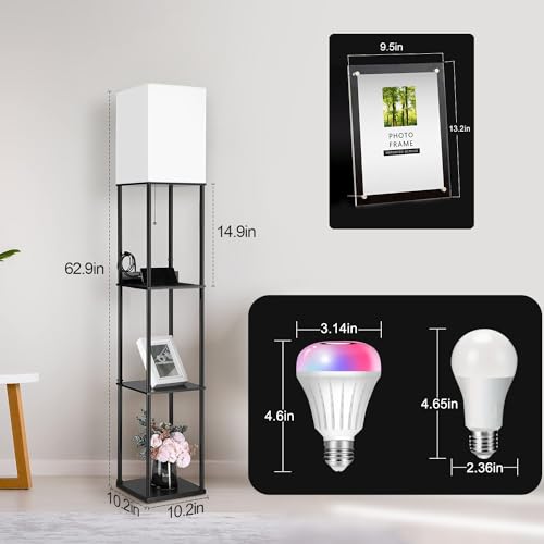 Specification: LED Floor Lamp w. Shelves & AC/USB Outlets Smart Light Bulb Galaxy Star Projector Color Changing & App/Voice Controlled Lights w. 3 Level Shelves for Bedroom Living Room Corner