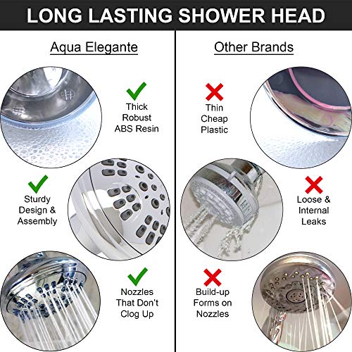💦 UNLIKE OTHER SHOWER HEADS THAT are made from cheap, thin plastic that leaks after a few showers, the Aqua Elegante Shower Head has a THICK LAYER of ROBUST ABS THERMOPLASTIC RESIN that is BPA FREE. The high pressure showerhead RESISTS CORROSION, WITHSTANDS PHYSICAL IMPACT, and DOESN’T RUST – while still being LIGHTWEIGHT and EASY-TO-HANDLE. What this means to you is a LONG LASTING shower head without having to deal with internal leaks.