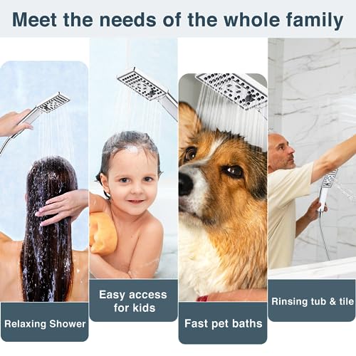 Specification: BRIGHT SHOWERS Handheld Shower Head Set High Pressure Hand Held Showerhead with 60 Inch Flexible Shower Hose and Adjustable Shower Arm Mount Bracket, 3 Spray Settings Shower Wand, Chrome