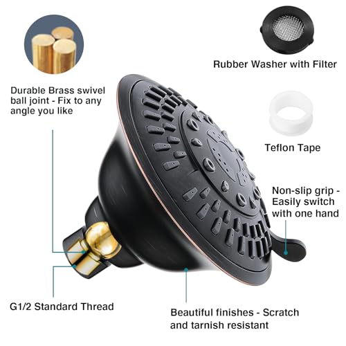 Specification: BRIGHT SHOWERS Shower Head High Pressure Rain Showerhead 5 Spray Setting Fixed Shower head Angle Adjustable Bathroom Showerhead, Oil Rubbed Bronze