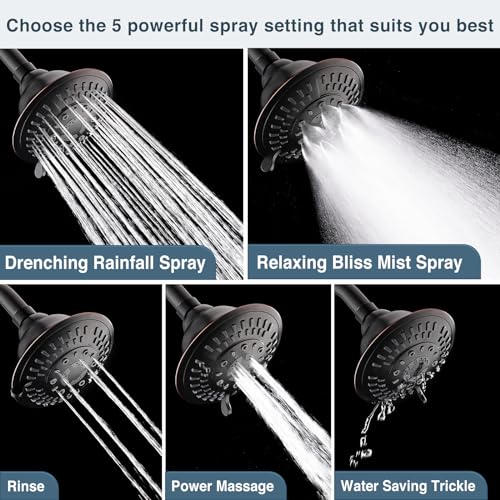 BRIGHT SHOWERS Shower Head High Pressure Rain Showerhead 5 Spray Setting Fixed Shower head Angle Adjustable Bathroom Showerhead, Oil Rubbed Bronze