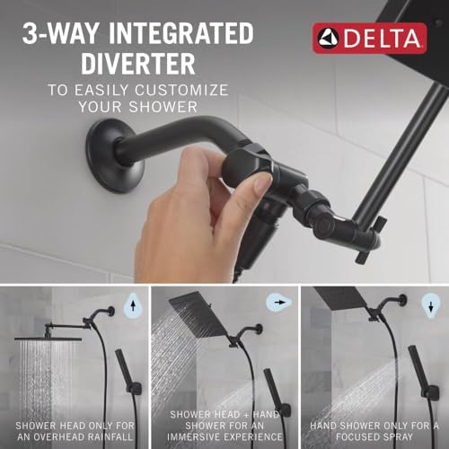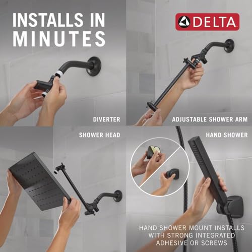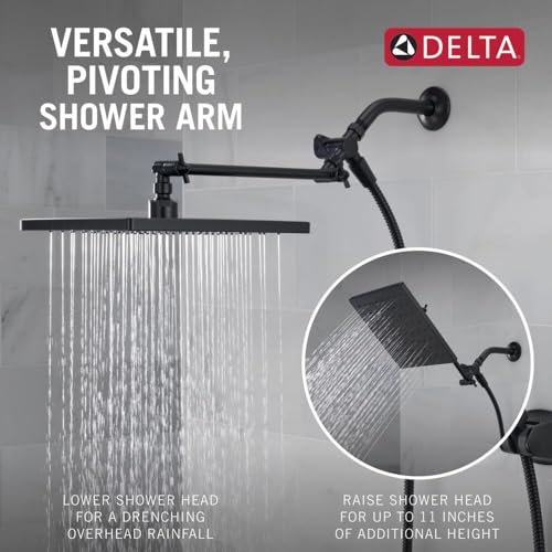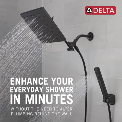 Specification: Delta Faucet 10-inch Raincan Shower Head and Hand Held Shower Combo, Black Square Shower Head, Rainfall Shower Head, Hand Shower, High Pressure Shower Head, 1.75 GPM Flow Rate, Matte Black 75527-BL