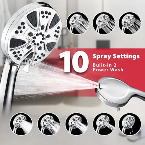 Specification: GRICH 2 IN 1 Shower Head with Handheld and Rain Showerhead: 10 Spray Modes/Settings High Pressure Shower Head with Built-in Spray Jets, Dual Shower Head with 60 Inch Stainless Steel Hose