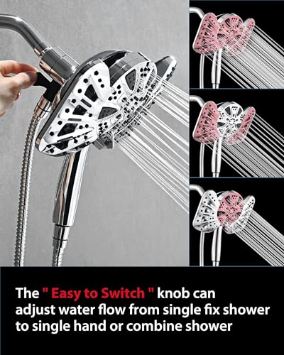 Double Shower Head Combo: GRICH 2-in-1 Twin series shower head adopt exclusive tight embrace design, rainfall shower head and handheld shower head arrange perfectly, no extra adhesive need. Black ” Easy to Switch” knob helps you easily switch water go with the flow from only hand shower or only rain shower to full body shower