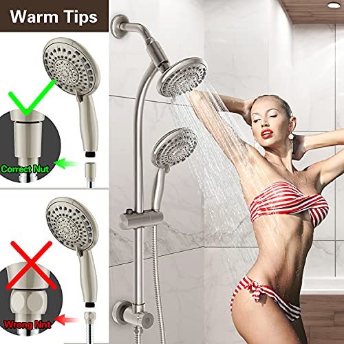 Handheld Showerhead & Rain Shower Combo for Easy Reach, 27.5″ Drill-free Stainless Steel Slide Bar, 5”of 5-setting Handheld Shower and Showerhead, with 5ft Hose -Brush Nickel