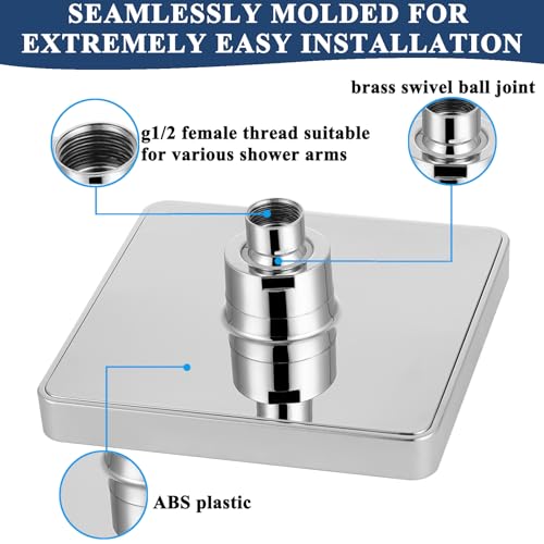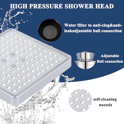 Specification: High Pressure Rain Shower head, 6 Inch Square High Flow Rainfall Showerhead, Easy Clean Adjustable Replacement for Your Bathroom Shower Heads, Chrome