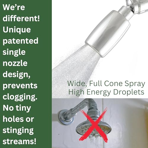 Award-winning, patented nozzle delivers a drenching FULL-SPRAY of LARGE, HIGH ENERGY DROPS. Quickly rinses long hair.