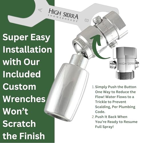 Specification: High Sierra Showerheads® – Solid Metal 1.5 GPM High-Efficiency, Low-Flow Shower Head with Pressure Control Valve that Shuts It Off to Just a Trickle – Chrome