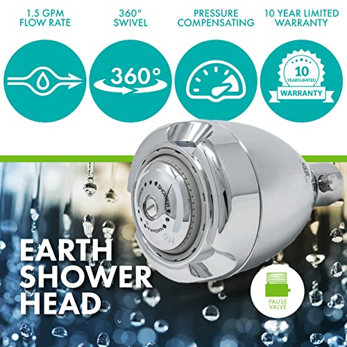 Niagara Conservation N2915C-V Earth Spa 3-Spray with 1.5 GPM 2.7-in. Wall Mount Adjustable Fixed Shower Head, Chrome | Showerhead Sprayer with Pressure Compensation Tech & Soap and Soak Pause Button