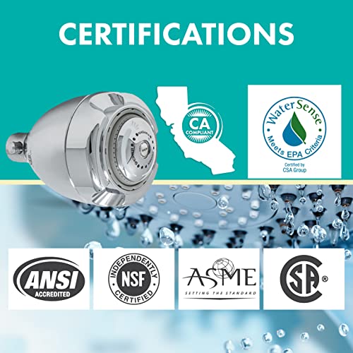 WATERSENSE COMPLIANT: Our efficient and cost-saving showerhead is California compliant, ANSI certified, NSF certified, ASME listed, CSA listed, and Watersense compliant in EPA criteria in water efficiency.