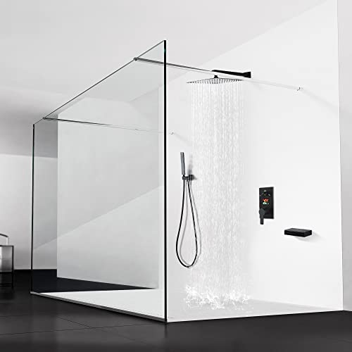 Specification: SKWOLL Matte Black Shower Faucet Set Rain Shower Head Digital Shower System 12 Inch Wall Mounted Shower Head with 3 Function LCD Display Valve Kit