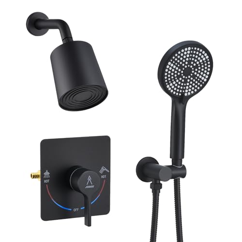 Specification: Shower Faucet Set Rain Shower System Valve Kit with Head -3 Setting Handheld High-Pressure Shower Fixtures Valve Included (Matte Black)