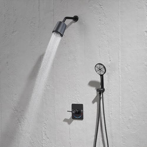 【HIGH QUALITY MATERIALS】This shower head and deal with set has a great all-metal construction. The mixing valve is made of solid brass and the multi-layer plating passes the salt spray test to reduce corrosion of the shower’s surface in long-term humid place, featuring no rust and long life, the fixed place of the shower top spray may also be rotated 360 degrees, even as the 304 stainless steel rain shower head with silicone nozzles wipes away mineral deposits with a simple wipe.