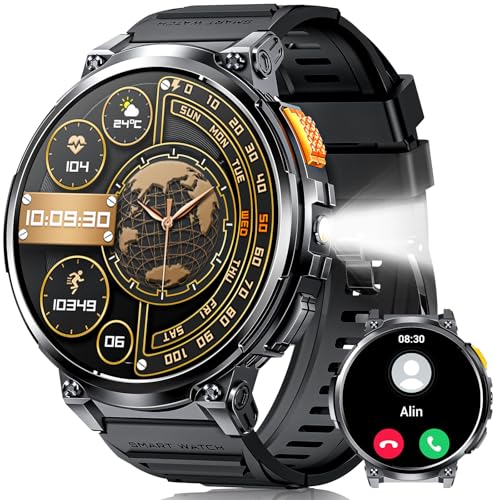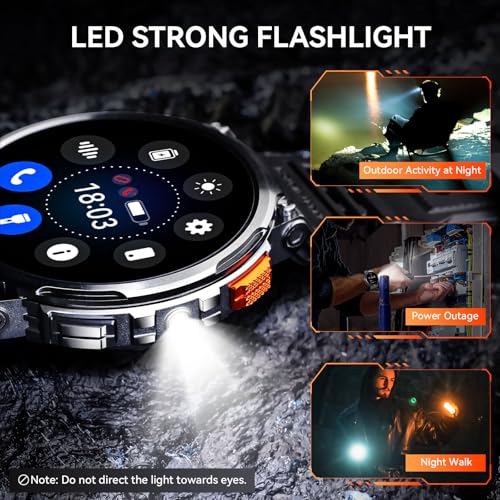Specification: Military Smart Watch for Men with LED Flashlight 1.85” Big Screen Rugged Smart Watch 730mAh Large Battery 114 Sports Modes Fitness Watch Heart Rate Sleep Tracker Tactical Smartwatch for iOS Android
