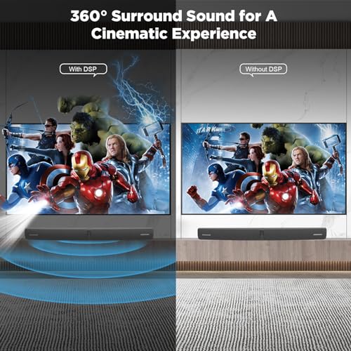 [𝐈𝐦𝐦𝐞𝐫𝐬𝐢𝐯𝐞 𝐂𝐢𝐧𝐞𝐦𝐚𝐭𝐢𝐜 𝐒𝐨𝐮𝐧𝐝]: Enjoy a powerful 70W sound stage that immerses you in a true cinematic experience. Equipped with 4 drivers, turns flat TV audio into a fascinating surround sound experience. Hear each and every whisper and sound explosion in vibrant stereo, enhancing your TV’s audio performance.