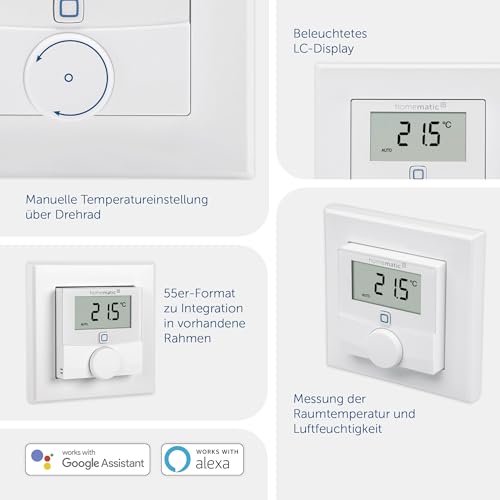 Homematic IP Smart Home Wall Thermostat with Humidity Sensor, Digital Thermostat Radiator / Underfloor Heating with App, Alexa, Google Assistant, Temperature Measurement, Energy Saving, 156669A0