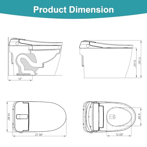 【Powerful Flush Toilet】One startup activates siphonic and jet flushing for double cleansing,to ensure thorough and efficient cleaning.With 1.27 gallons per flush power, this smart toilet ensures effective and efficient cleaning while conserving water.
