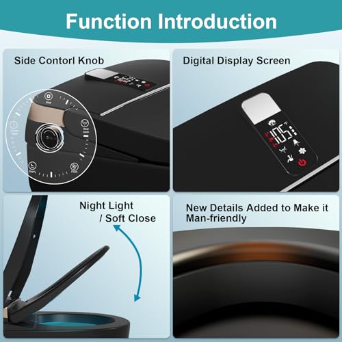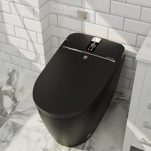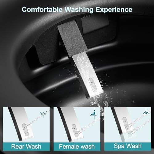 Specification: Black Smart Toilet with Auto Open Lid and Auto Flush, Modern Smart Tankless Instant Heating Toilet with Bidet Built in, Wireless RemoteControl and Smart Knob.