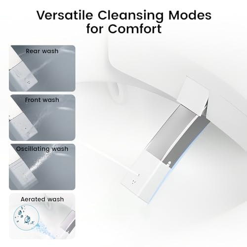 Versatile Washsing Modes: Experience ultimate hygiene and comfort with SOTOMO smart bidet. Make a choice from rear wash, front wash, oscillating wash, and aerated wash modes, plus auto wash and Hot/Cold massage. Adjust water temperature and pressure for a personalized touch.
