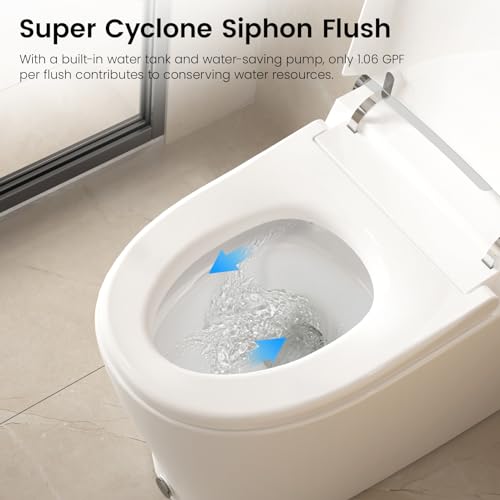 Upgrade Power Flush: The SOTOMO smart toilet features a built-in water tank and assisted pump for homes with low or unstable water pressure, ensuring powerful flushing performance. With super cyclone siphon flush, it uses only 1.06 GPF, keep the toilet bowl clean also contributing to water resource conservation.