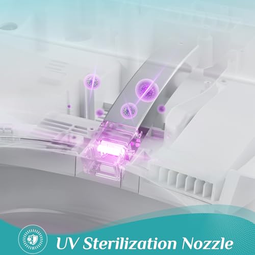High-tech Modern Toilet: Equipped with a built-in ceramic heater, it quickly heats water to your desired temperature, providing a soothing and comfortable cleansing experience every time. The innovative bidet seat features an integrated UV light that ensures the hygiene of the nozzle.