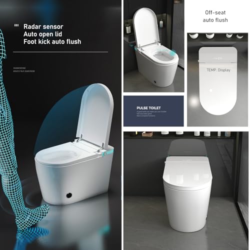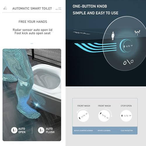 Specification: Intelligent Smart Toilet with Auto Open/Close Lid, Automatic Tankless Toilet with Bidet Built In, One Piece Toilet with Foot Sensor Operation for Modern Bathrooms