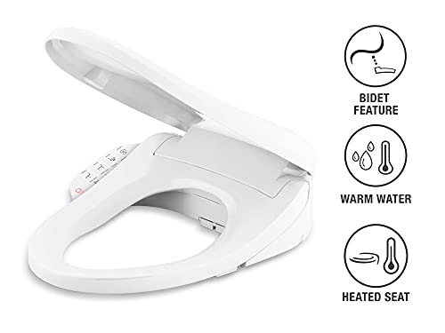Specification: KOHLER 8298-0 PureWash E590 Elongated Bidet Toilet Seat, Heated Bidet, Bidets for Existing Toilets, Nightlight, Self-Cleaning Nozzle, White